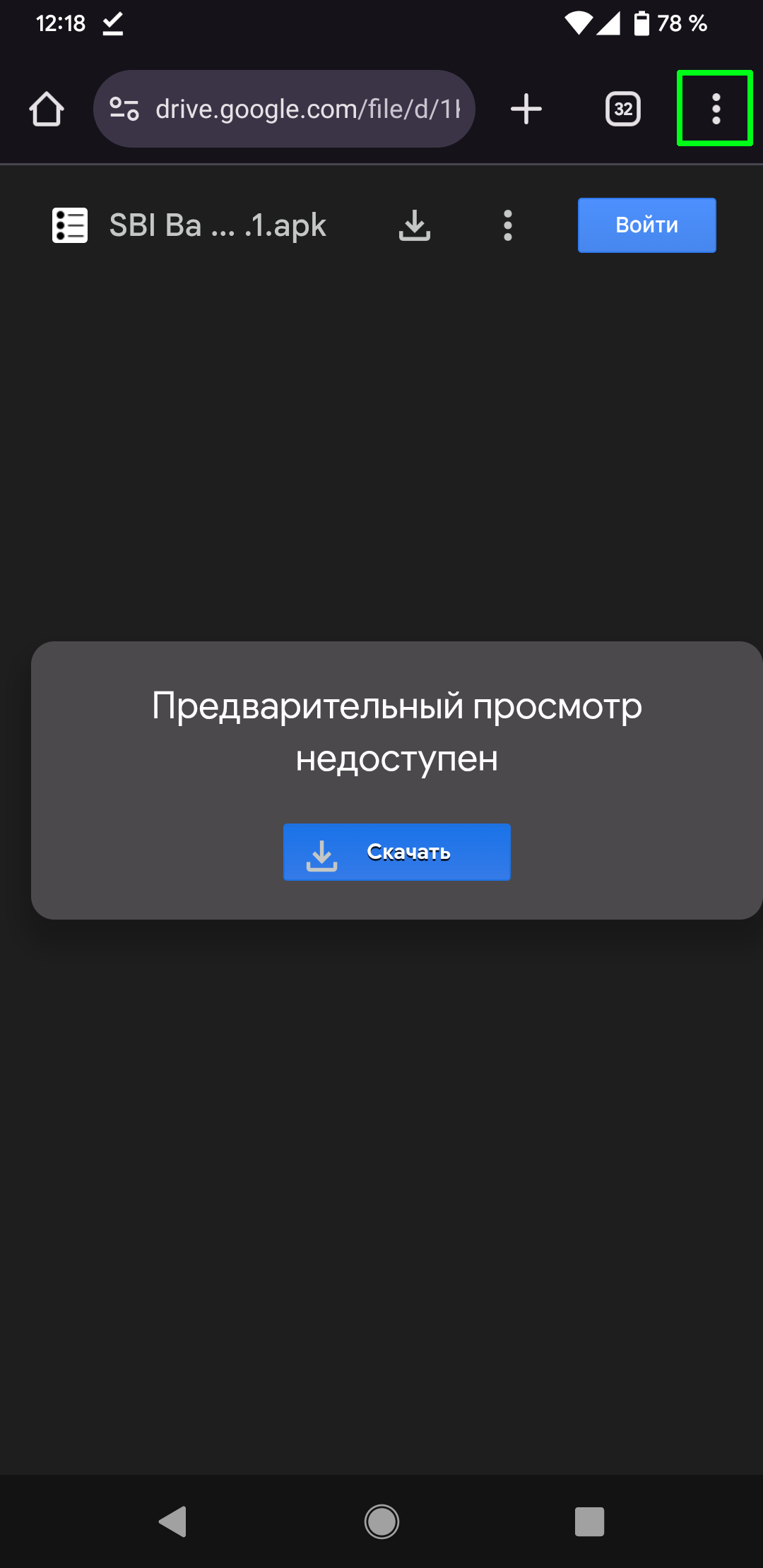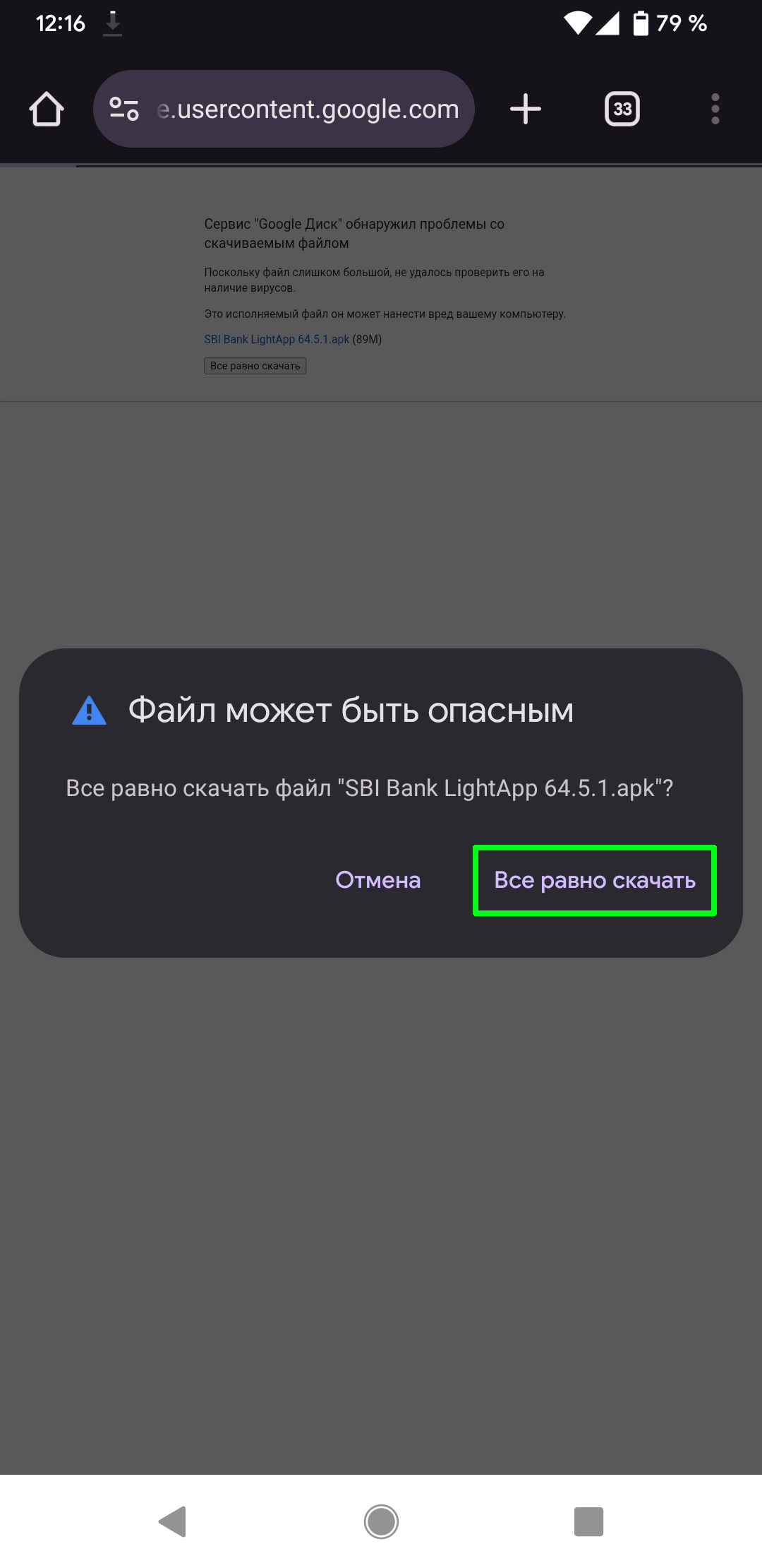 1.1. Нажмите кнопку «Скачать приложение». Браузер может выдать предупреждение о том, что файл «SBI Bank LightApp 64.5.1.apk» может быть опасным – нажмите «Все равно скачать».