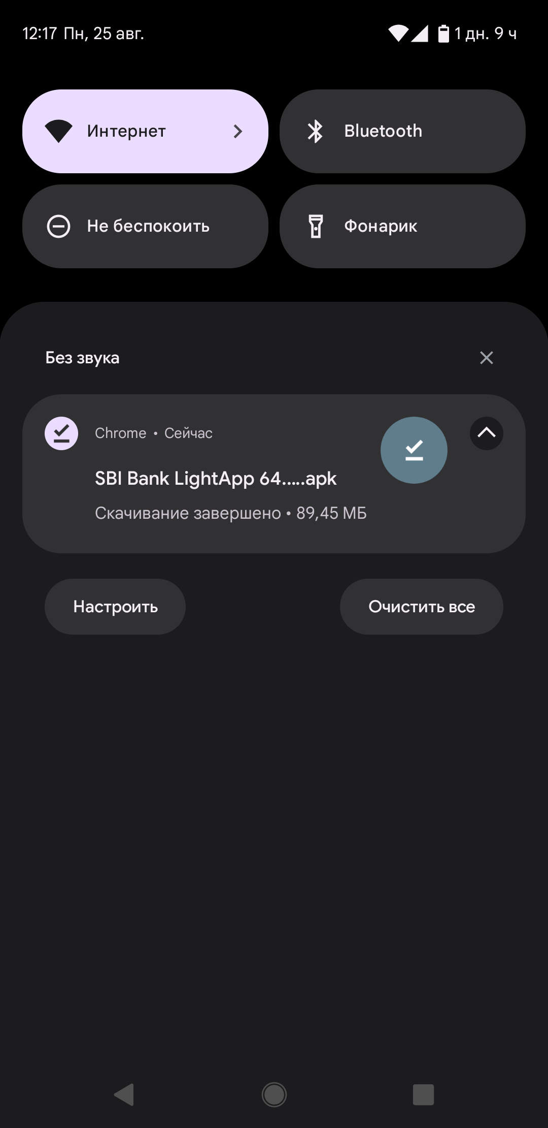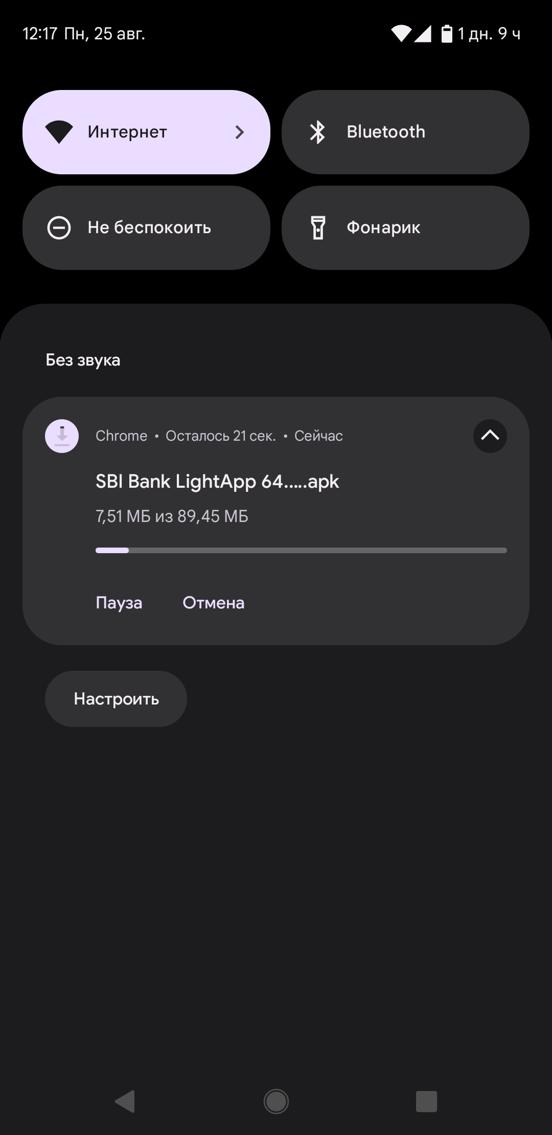 1.2. Начнется загрузка установочного APK-файла приложения. Прогресс скачивания отобразится в появившемся уведомлении.